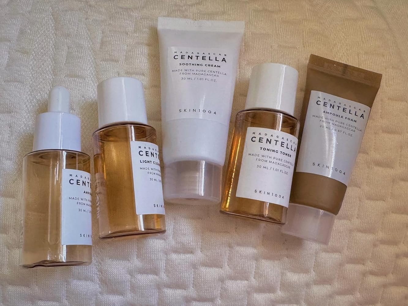This travel kit includes Madagascar Centella light cleansing oil, cleanser, toner, ampoule and cream.